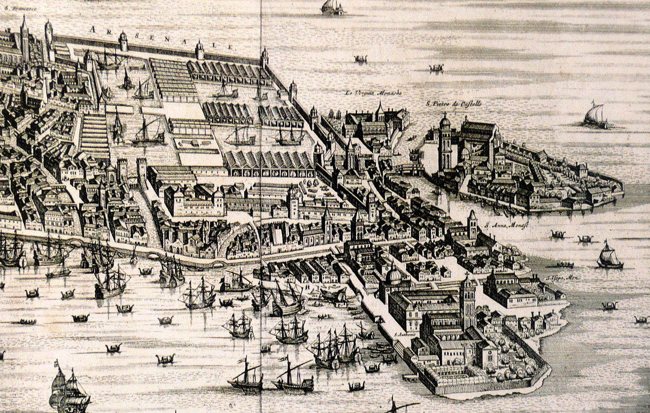 Veduta dell’Arsenale Vecchio con le Gaggiandre (imponenti tettoie acquatiche adibite al ricovero delle galere a remi)