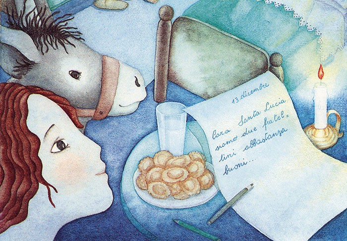 Da secoli Santa Lucia, come Babbo Natale, la Befana, Gesù Bambino e San Nicola, è vista come una figura magica che passa casa per casa durante la notte.